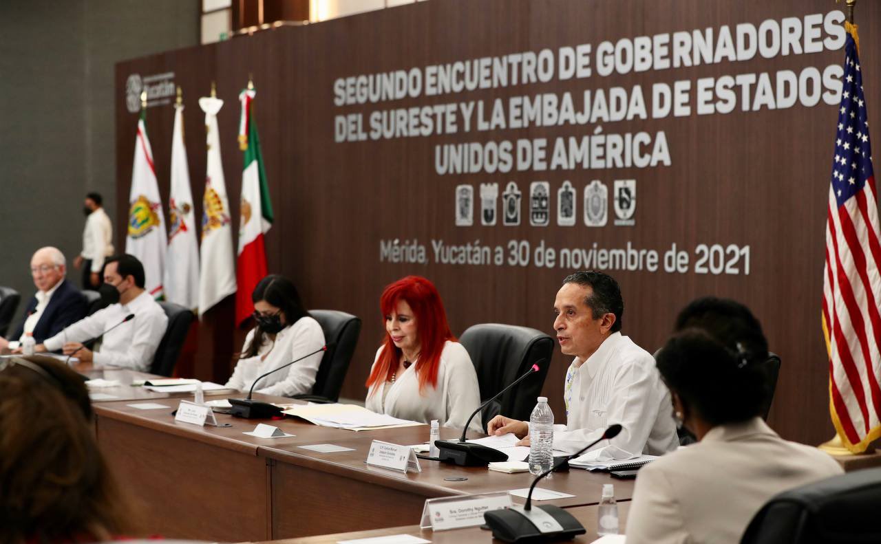 El gobernador Carlos Joaquín participó en la segunda reunión bilateral de gobernadores del sureste mexicano con el embajador de Estados Unidos en México, Kenneth Lee Salazar, que se celebró en esta ciudad.