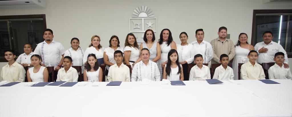Las y los ganadores de la OCI que participaron en el convivio realizado en el salón “Cuna del Mestizaje” de Palacio de Gobierno son: Estefani Liszet Arita Gutiérrez del municipio de Solidaridad; Hafid Olaf Bonilla Arreguín de Benito Juárez; Exal Lysander Domínguez Díaz de Tulum; Emiliano Canales Hernández de Benito Juárez; Alexander Díaz Sotelo de Othón P. Blanco; Agustín Aguayo Alvarado de Bacalar; Ariadnne Ivana Castro Rivero de Othón P. Blanco; Valeria Camila Navarrete Zetina de Tulum; Luis Alexis García Pech de Felipe Carrillo Puerto y Emiliano Ángel Chimal Gutiérrez de Felipe Carrillo Puerto.