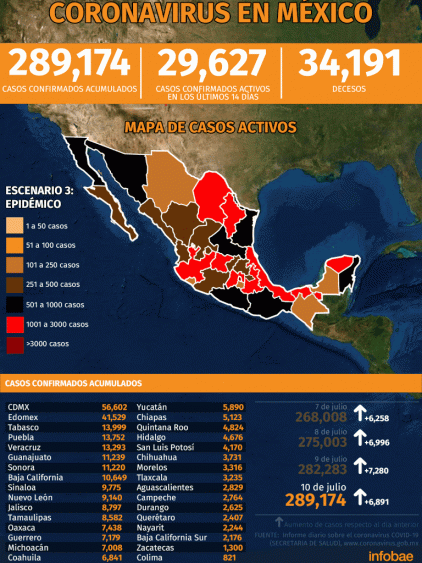 Sin embargo, aunque exculpó en cierta medida a las autoridades locales al opinar que “Es una responsabilidad individual porque no se puede obligar a nadie a mantener sana distancia y tener los cuidados esenciales» fue punzante al indicar «Es responsabilidad local, estatal y gubernamental también para asegurar las condiciones para que se dé o no una reapertura ordenada. Sin ánimos de culpar y esto no tiene nada que ver con la política, esto es una evaluación técnica. Señales preocupantes de repuntes, no solo en estos estados, hay otros que iremos presentando, en donde cuando es la curva epidémica esperada, ya sabíamos que la íbamos a tener. No hay que reclamar, pero sí hay que actuar”, dijo el subsecretario.
