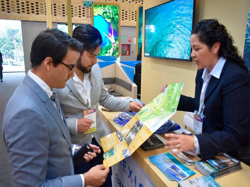 En el marco de la feria en Colombia y dentro del pabellón del Caribe Mexicano, Andrés Martínez, director de Mercadotecnia y Lizzie Cole, director de Promoción del CPTQ, se reunieron con representantes de las agencias de viajes y tour operadores: Santini Tours, Besttravel, Solaris, Solways, Costamar Destinations, Una Turismo, Aviatur y el Corte Inglés.