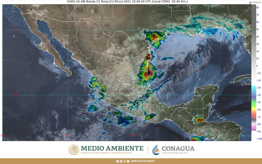 Golfo de México: Cielo parcialmente nublado durante el día y nublado por la tarde con lluvias puntuales muy fuertes en Tamaulipas y fuertes en Veracruz, ambos con descargas eléctricas y posible caída de granizo; además de lluvias aisladas en Tabasco. Ambiente fresco por la mañana con bancos de niebla en zonas serranas y caluroso por la tarde. Viento del este y sureste rachas de 50 a 60 km/h en la región.