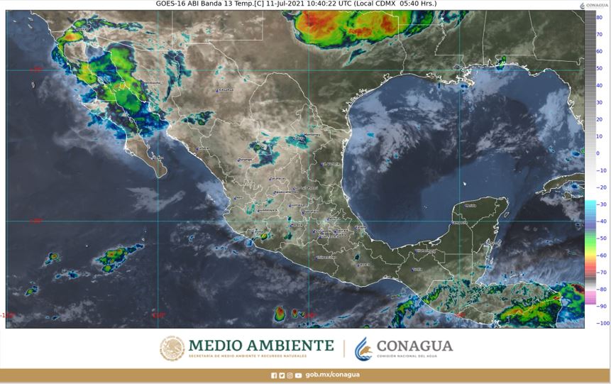 Pronóstico del clima para hoy domingo 11 de julio en Quintana Roo. Este día, un canal de baja presión se extenderá sobre el noroeste, occidente y centro del país, interaccionará con inestabilidad atmosférica superior y con el ingreso de humedad del Océano Pacífico y Golfo de México, lo que provocará chubascos y lluvias fuertes a muy fuertes, descargas eléctricas y posibles granizadas en zonas del noroeste, norte, occidente, centro y sur del territorio nacional, además de tormentas puntuales intensas en Sonora, Sinaloa y Durango. Por otra parte, la onda tropical Núm. 9 se desplazará sobre el sureste de México, originando chubascos y lluvias puntuales fuertes en dicha región, incluida la Península de Yucatán. También prevalecerá ambiente caluroso a muy caluroso en zonas del noroeste, norte y noreste de la República Mexicana, así como en la Península de Yucatán, previéndose condiciones de onda cálida con temperaturas de 45 a 50 °C en zonas de Baja California.