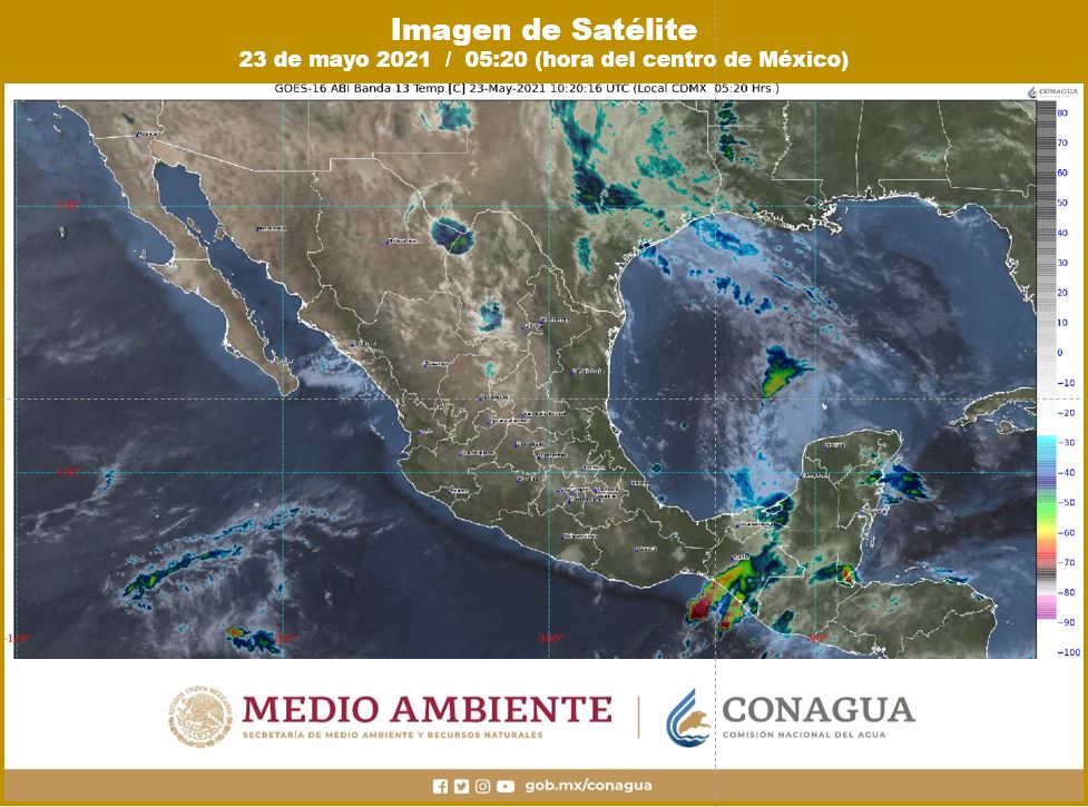 Por otro lado, un canal de baja presión en el sureste del país y el ingreso de humedad del Golfo de México, ocasionarán chubascos y lluvias puntuales fuertes acompañadas de descargas eléctricas en el oriente y sureste del territorio nacional, incluida la Península de Yucatán.