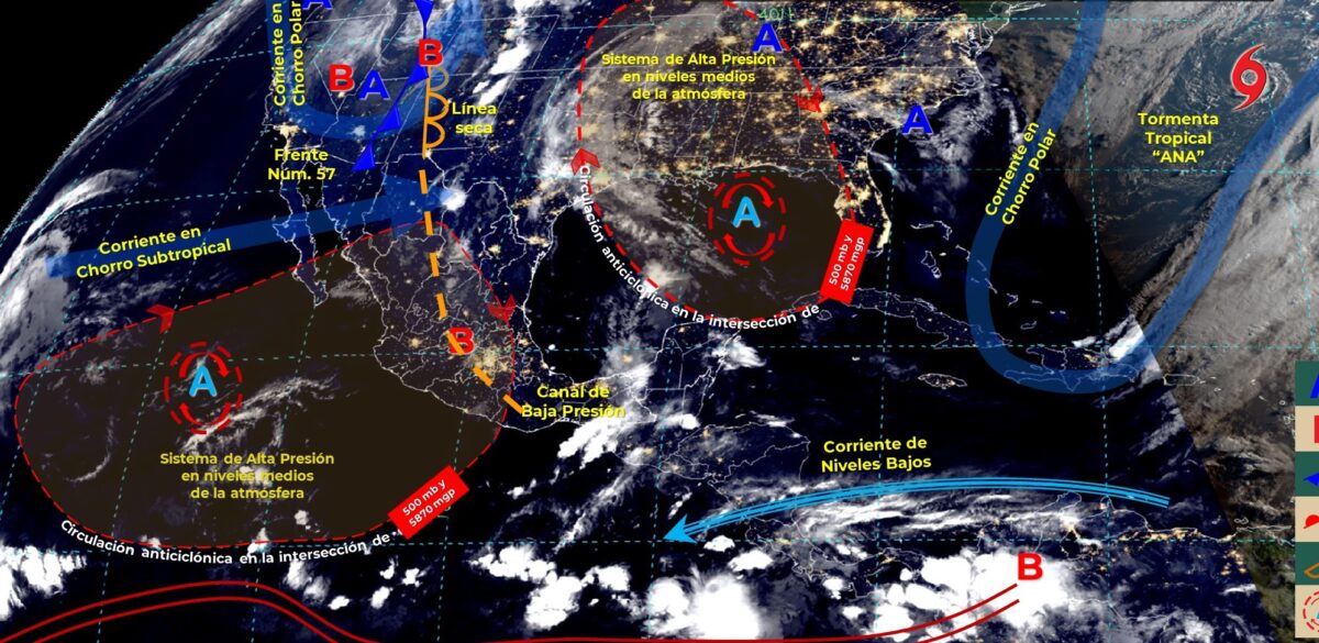 La tormenta tropical “Ana” en el Atlántico Norte, se localiza a más de 3 mil km al noreste de las costas nacionales. No afecta al país.