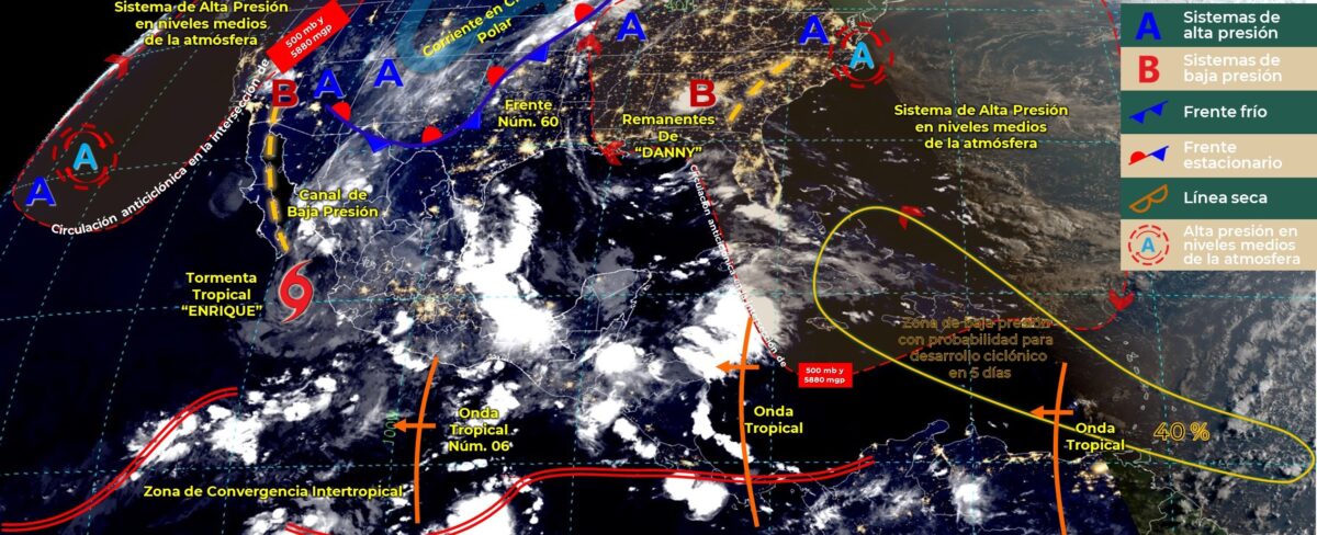 Pronóstico del clima para hoy martes 29 de junio en Quintana Roo.- Este día, la tormenta tropical «Enrique» se localizará al sureste de las costas de Baja California Sur, debilitándose gradualmente.