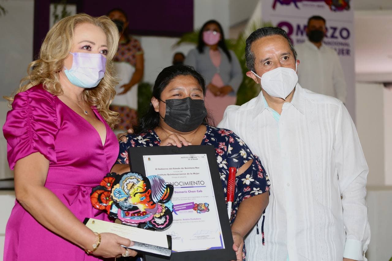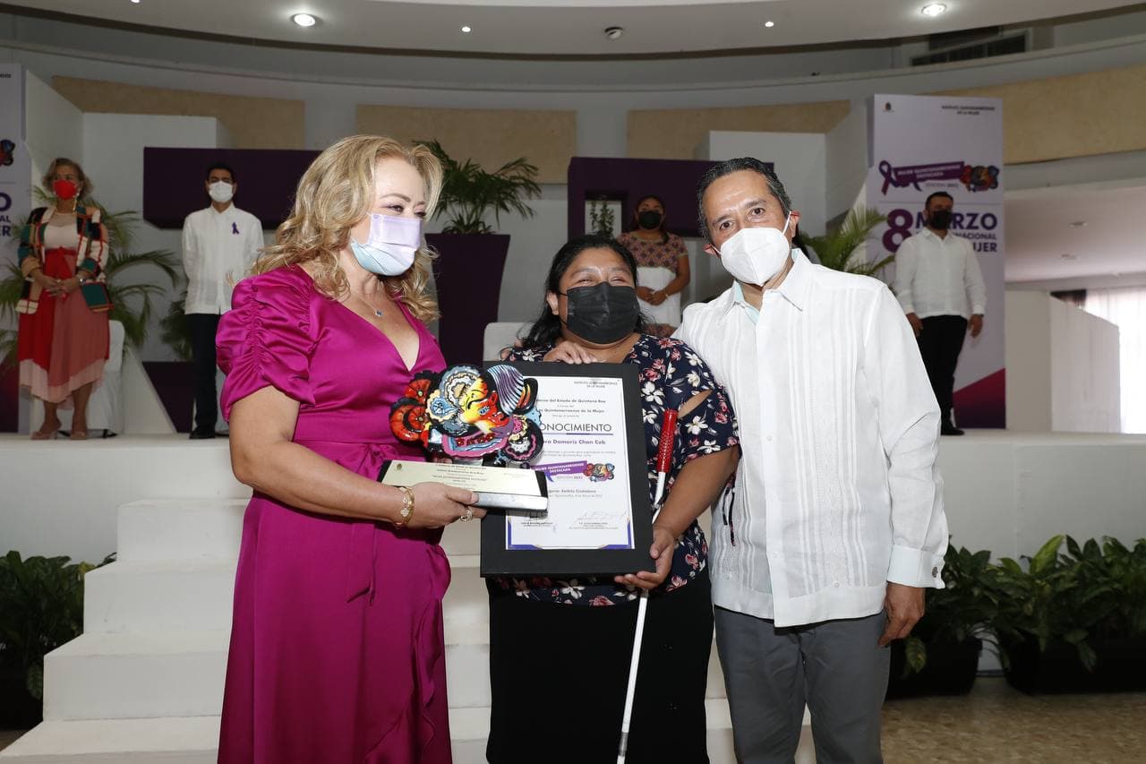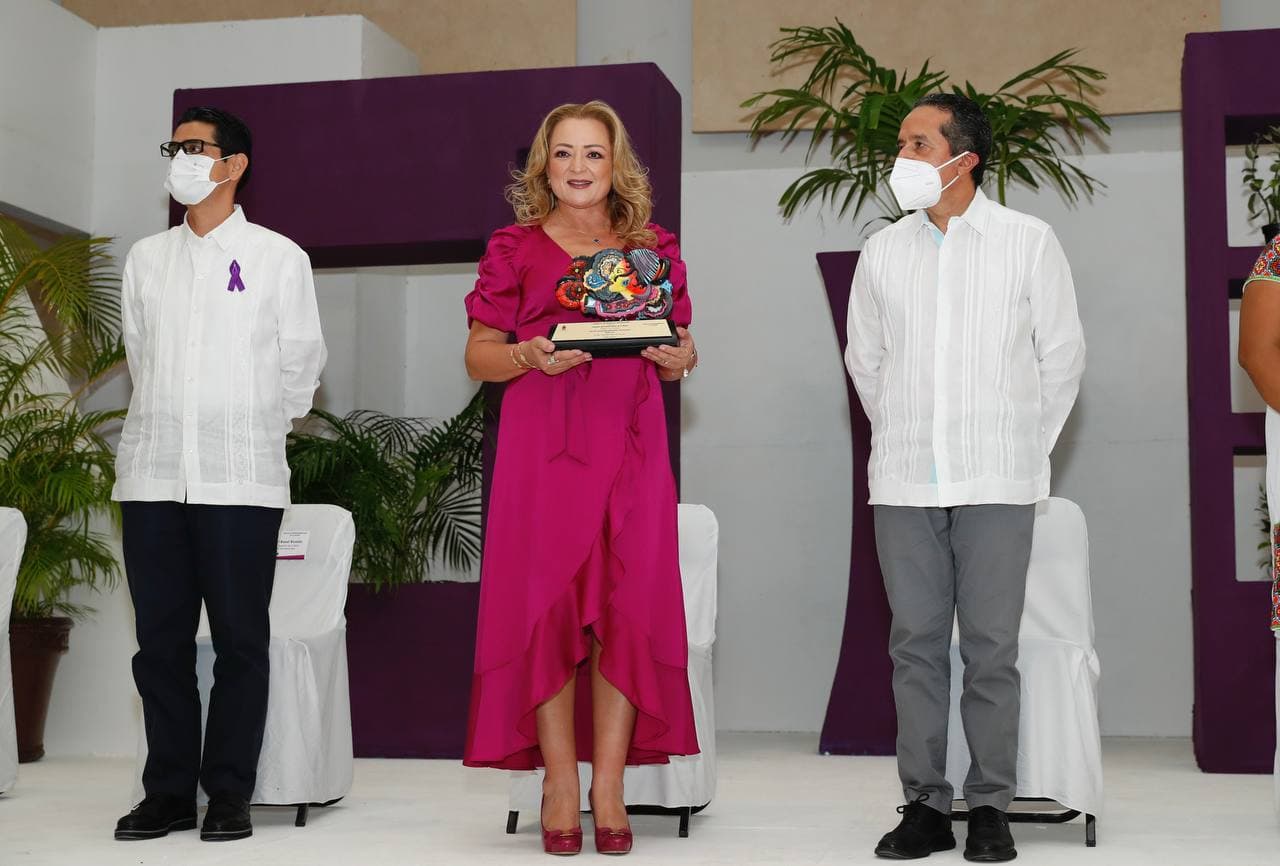 También se entregó el galardón especial para mujeres que han colaborado con el Instituto Quintanarroense de la Mujer, a la Sra. Gaby Rejón de Joaquín; en representación de la Colectiva Defensoras Digitales Quintana Roo a Analia Veccar; a Marina González Zihel; Mayra San Román Carrillo Medina y Karla Patricia Rivero González.