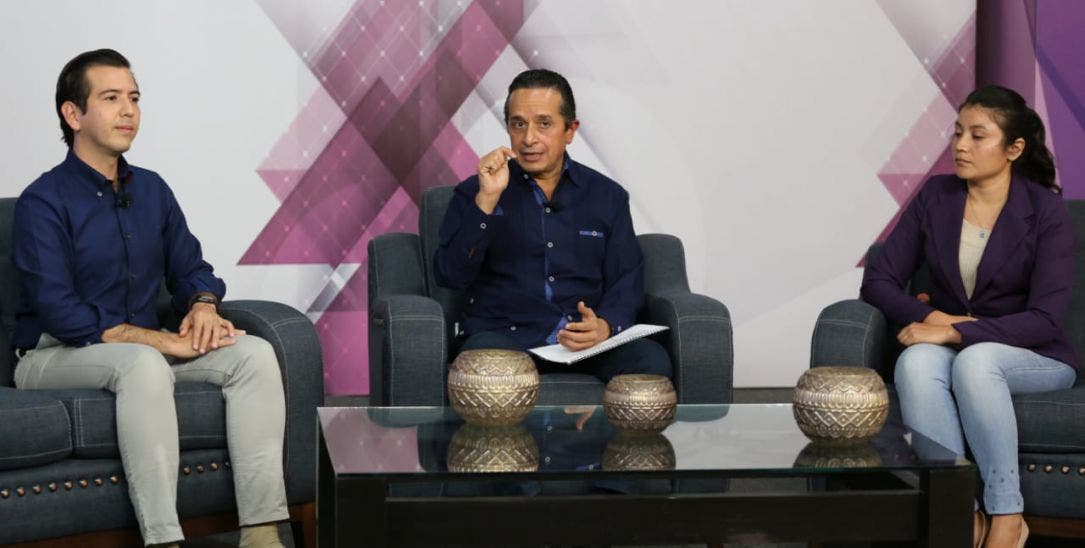 En el programa estuvieron presentes Fernando Méndez, director del Instituto Quintanarroense de la Juventud y las jóvenes emprendedoras Georgette Ashanti Alcocer Carrillo y Abril Anguas Escalante, quienes participan en el Fondo de Innovación Social que les permitirá, como a otras y otros jóvenes a consolidar sus proyectos.