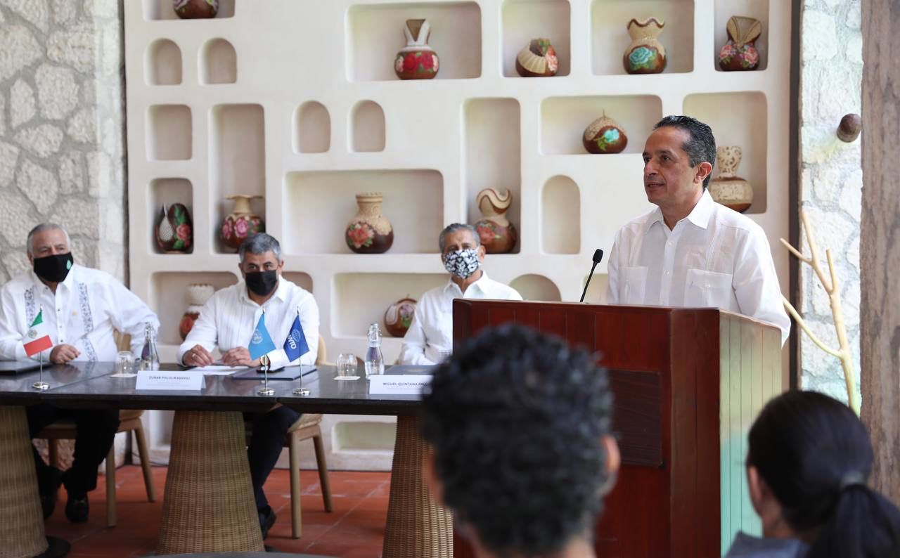 El encuentro del secretario general de la OMT y el gobernador de Quintana Roo, forma parte a un seguimiento a temas planteadas en 2019 en Madrid, España, como la presentación del Plan Maestro de Turismo Sustentable Quintana Roo 2030 que contempla acciones como el seguro paramétrico para la protección de arrecifes y playas en caso de huracanes y la gestión como producto turístico sostenible.