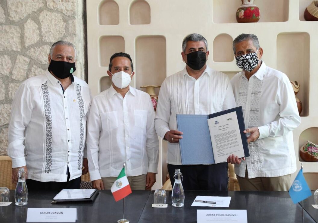 El encuentro tuvo lugar durante la firma de un Memorandum de Entendimiento entre Zurab Pololikashvili y el director general de Grupo Xcaret, Miguel Quintana Pali, en donde estuvieron presentes Rogelio Jiménez Pons, director general de Fonatur; David Quintana Morales, vicepresidente de Estrategia y Desarrollo de Xcaret; Carlos Constandse de Grupo Xcaret y Marisol Vanegas Pérez, secretaria estatal de Turismo.