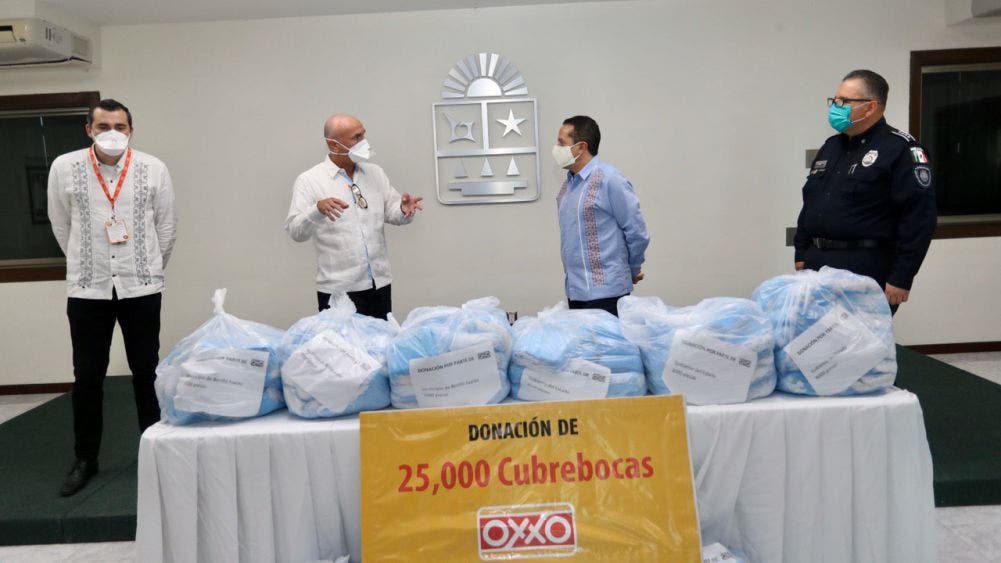 Por su parte, José Luis Soberón Hinojosa, coordinador de protección patrimonial de las tiendas Oxxo-Quintana Roo, explicó que, mediante la Secretaría de Seguridad Pública de Quintana Roo y el Mando Único Policial, se distribuirán los 25 mil cubrebocas a los agentes policiacos.
