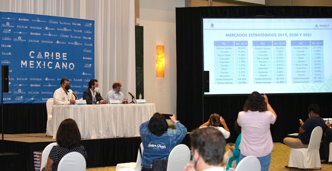 En conferencia de prensa conjunta organizada por la Coordinación General de Comunicación, la Secretaría Estatal de Turismo (Sedetur), el Consejo de Promoción Turística de Quintana Roo (CPTQ) dieron a conocer que la recuperación de los mercados estratégicos permitió avanzar de forma gradual, ordenada y responsable en la reapertura de las actividades.