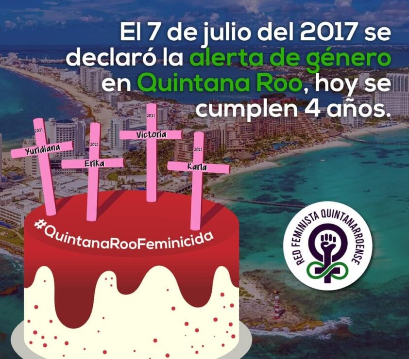 El 7 de julio de 2017 se decretó la alerta de género en Quintana Roo; sin embargo, las integrantes del colectivo manifestaron que esta alerta es solo en apariencia, ya que el estado ocupa el tercer lugar a nivel nacional como el más peligroso para ser mujer.