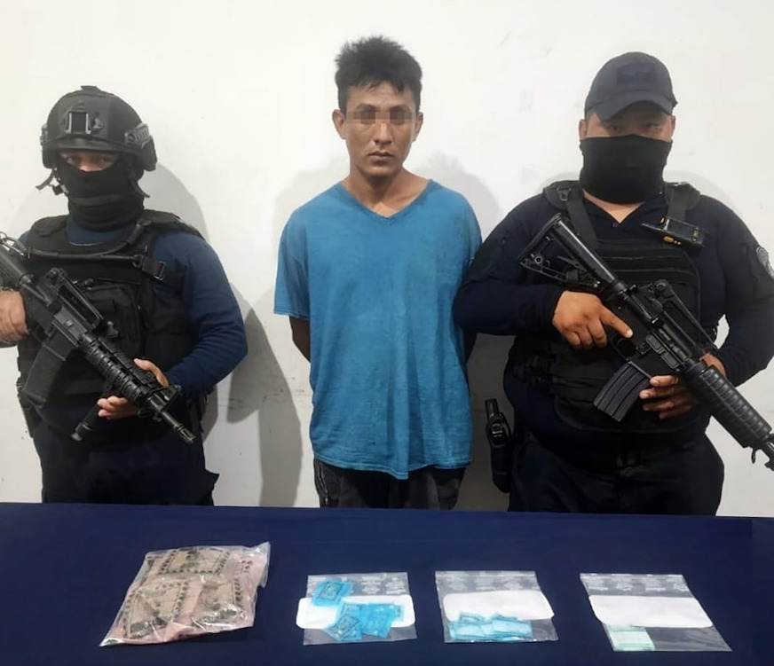 La SSCQROO también detuvo a dos personas mas en el municipio de Tulum, en primer lugar a un individuo al cual se le identificó como Pablo “N”, acusado de probable participación en delitos contra la salud.