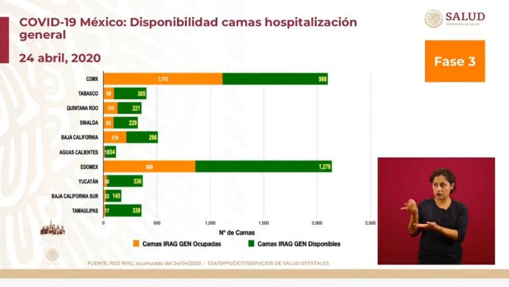En cuanto a Quintana Roo se reportan un total de 354 camas disponibles, de las cuales 133 están ocupadas.