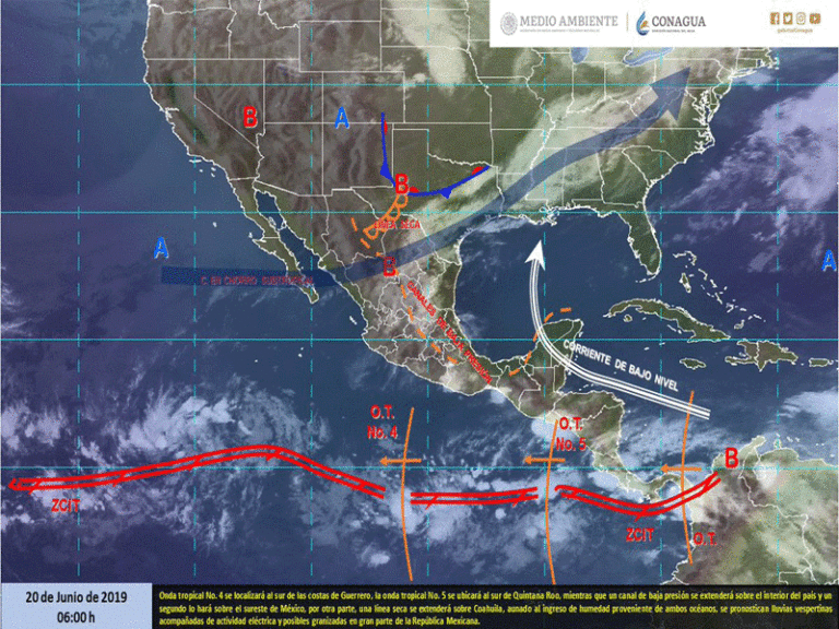 Las condiciones descritas serán generadas por las ondas tropicales 4 y 5, que se localizarán al sur de las costas de Guerrero y al sur de Quintana Roo, respectivamente