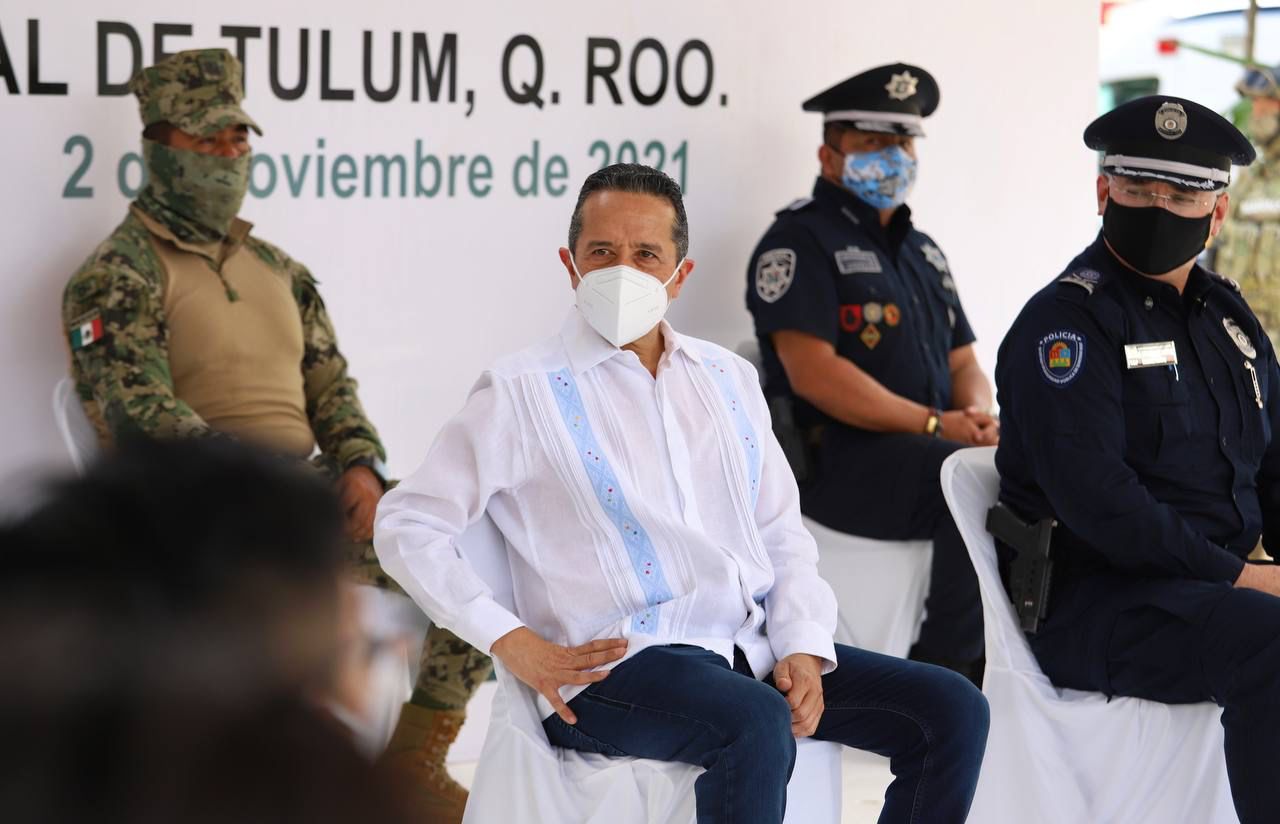 Al atestiguar la entrega de 10 patrullas pickup y 6 motopatrullas a la Dirección General de Seguridad Pública y Tránsito de Tulum, el gobernador Carlos Joaquín expresó que este municipio crece muy rápido y necesita, de manera urgente, orden y desarrollo armónico para tener mayor seguridad.