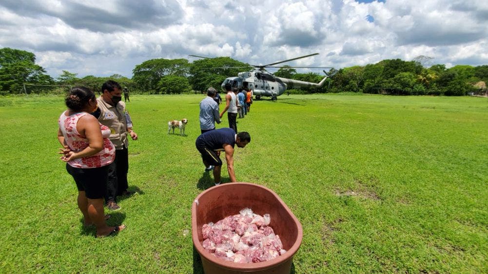 Se ha dotado a esa población de más de seis mil 170 paquetes, de los cuales dos mil 437 fueron transportados por medio de un puente aéreo y tres mil 742 por vía terrestre: 852 kilos de frijol, mil 664 litros de agua potable, 305 colchonetas, cobertores, papel para la higiene personal y más de tres 700 pañales.