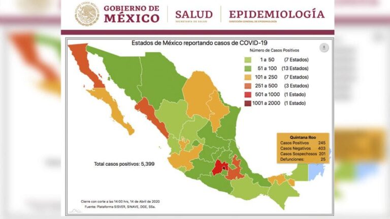 Siguen en aumento muertes por Coronavirus en Quintana Roo, ya van 25.- Según el informe mas reciente proporcionado por las autoridades nacionales de salud, dentro del informe técnico que actualizan a diario, la cifra de fallecidos en el estado de Quintana Roo por coronavirus COVID19, se encuentra en este momento en 25 decesos, así como 245 casos confirmados de infectados, con lo cual se rebasa la barrera de los 200 casos, con un salto de 48 casos en menos de 24 horas.