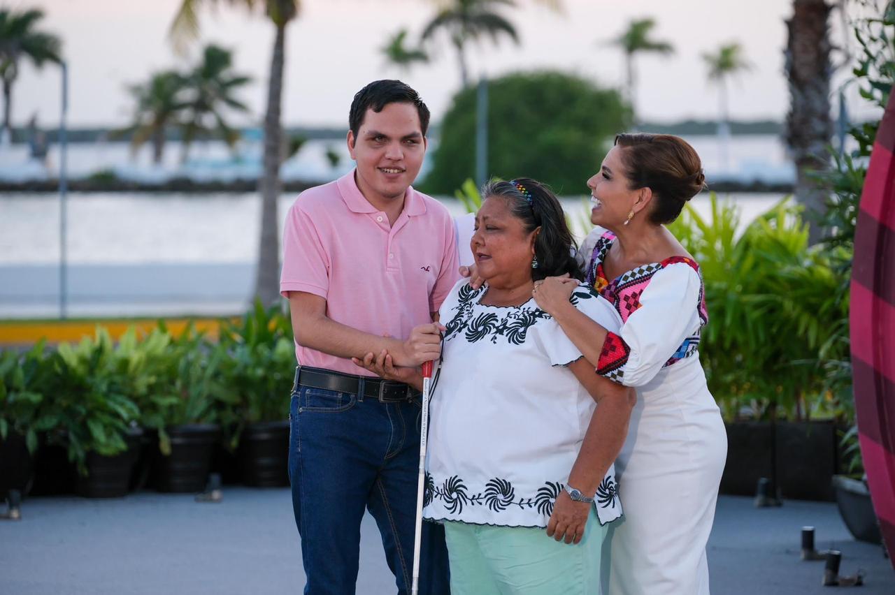Cercanos a la gobernadora, la acompañaron testimonios vivos de historias de transformación, como Julia Cahuich Puc y su hija Cristel, beneficiaria del programa de cardiopatía; Tania París y Kendall de la Cruz, del programa de cataratas; Adriana Lozada, beneficiaria de la colonia Colosio, de Playa del Carmen, que con su título de propiedad ya tiene certeza jurídica de su patrimonio.
