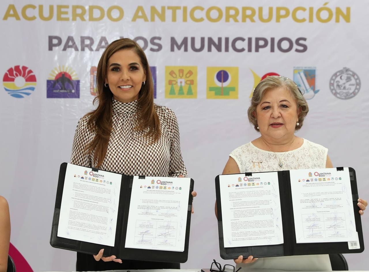 Con el impulso, respaldo y seguimiento de la sociedad civil organizada, Quintana Roo se convirtió hoy en el primer estado del país en trabajar de manera coordinada con los 11 presidentes municipales en el combate a la corrupción, al firmar el Acuerdo Anticorrupción con los Municipios ante la presencia de la gobernadora Mara Lezama Espinosa y la directora de Ciudadanos por la Transparencia Cynthia Dehesa.