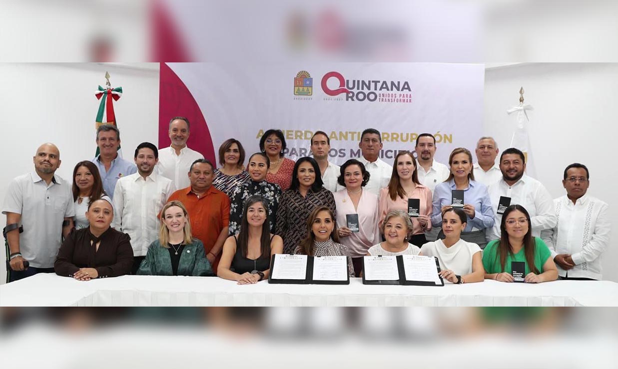 Con el impulso, respaldo y seguimiento de la sociedad civil organizada, Quintana Roo se convirtió hoy en el primer estado del país en trabajar de manera coordinada con los 11 presidentes municipales en el combate a la corrupción, al firmar el Acuerdo Anticorrupción con los Municipios ante la presencia de la gobernadora Mara Lezama Espinosa y la directora de Ciudadanos por la Transparencia Cynthia Dehesa.