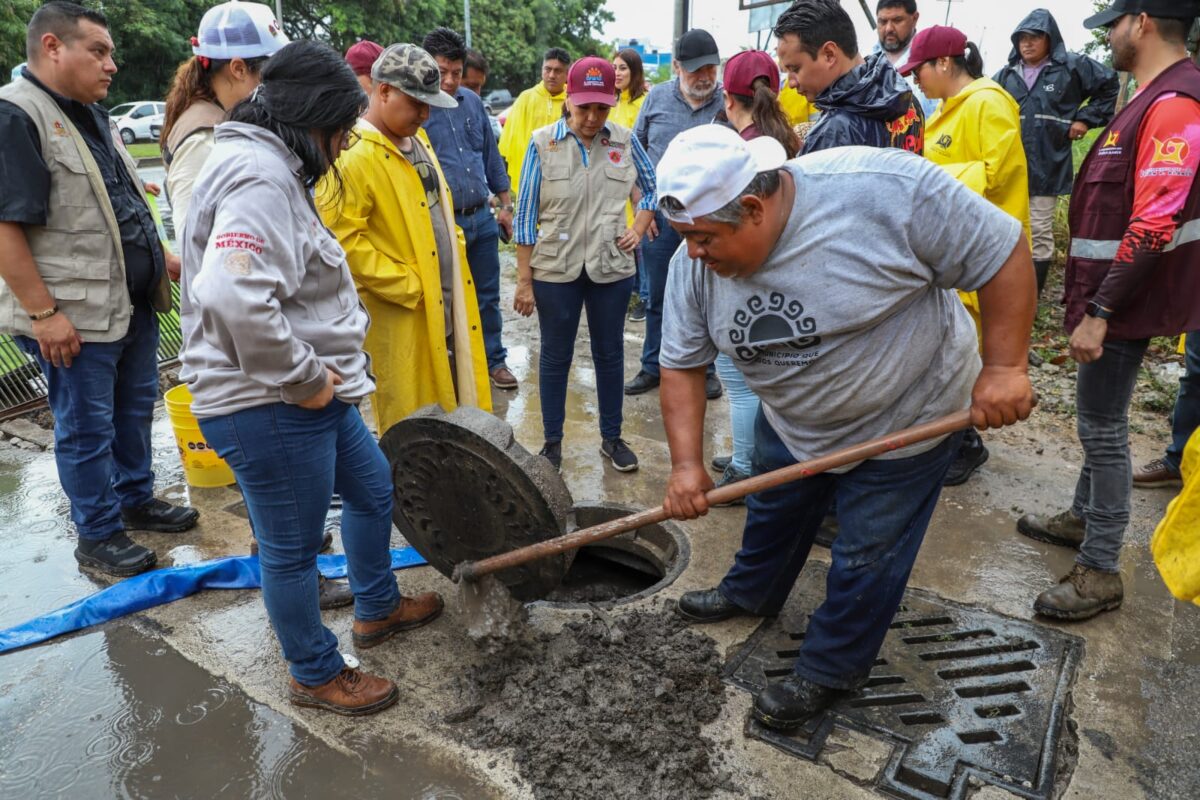 Previamente, durante la mañana recorrió diversos puntos en los que se realizaban acciones de limpieza de pozos, alcantarillas y desazolves, como en la avenida San Salvador con avenida José María Morelos, Laguna Encantada, calle Belmopan, Pacto Obrero, Bicentenario y Proterritorio.
