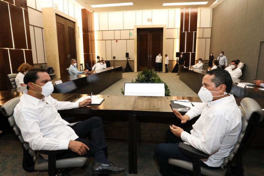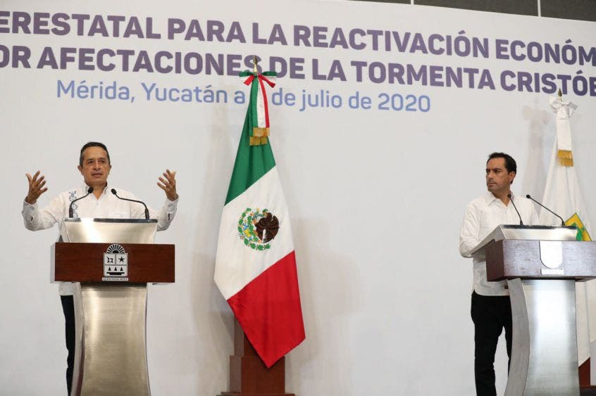 Carlos Joaquín y Mauricio Vila trabajaron en esta ciudad en la “Reunión interestatal para la reactivación económica y la gestión por afectaciones de la tormenta ‘Cristóbal’”, tras la cual ofrecieron una conferencia de prensa conjunta.