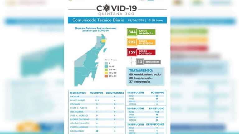 Ya van 12 defunciones y 159 casos de Coronavirus en Quintana Roo