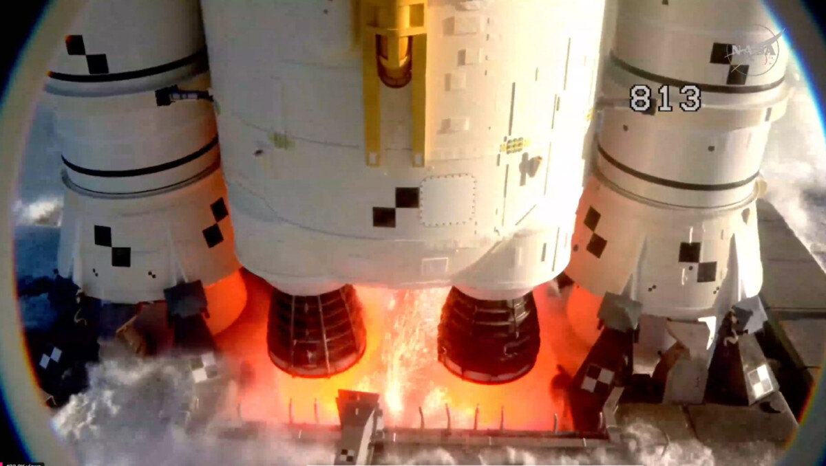 Los cuatro motores RS-25 del cohete SLS y los boosters laterales empujaron la nave a través de la atmósfera con una potencia que nadie había visto en una misión tripulada desde los tiempos de la Guerra Fría Foto: Captura de Pantalla NASA