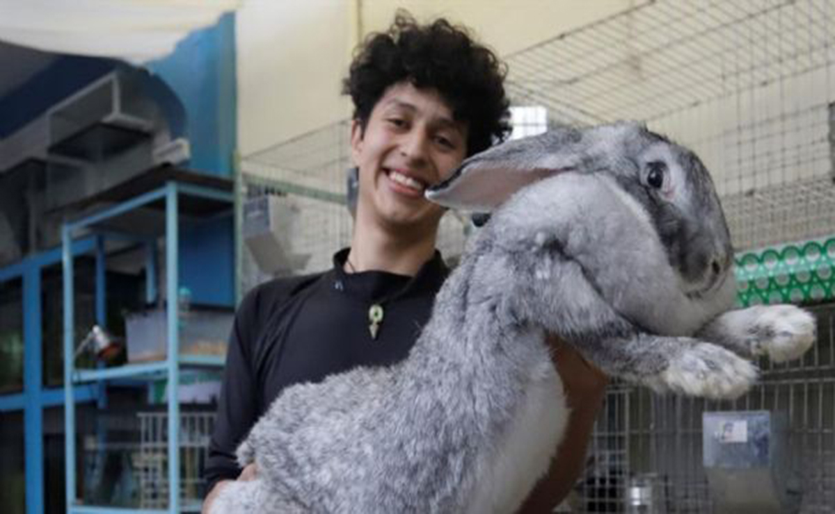 En entrevista con Efe, el universitario de 21 años, dijo que luego del trabajo escolar inició su gusto de criar conejos gigantes y trabajar con su genética para lograr la reproducción de una nueva especie.