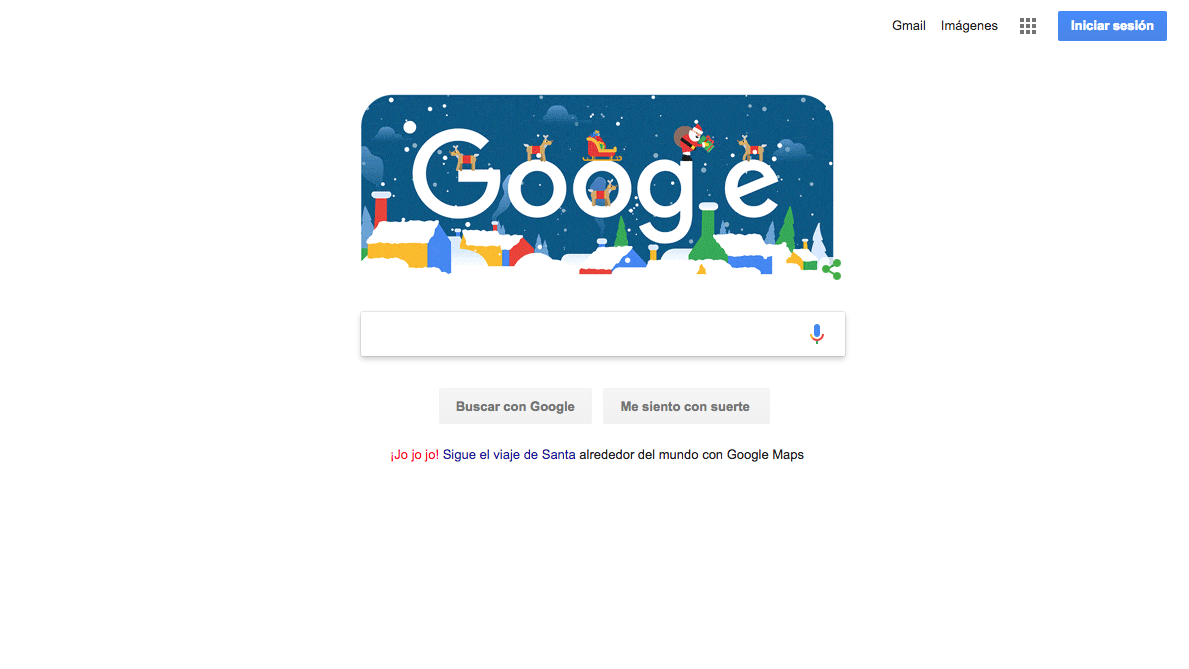 Esta mañana, si entras a la página, lo primero que verás es el tradicional nombre de Google, acompañado de decoraciones navideñas. A su vez, puedes ver a Santa Claus, sus renos y su trineo.