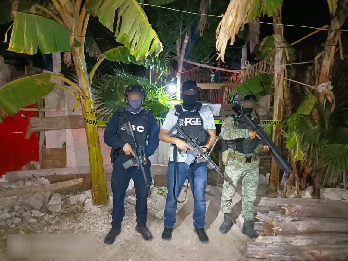 Aseguran drogas y detienen a cuatro durante cateos en Tulum; tras concluir las diligencias, en cada uno de los inmuebles se colocaron sellos de aseguramiento.