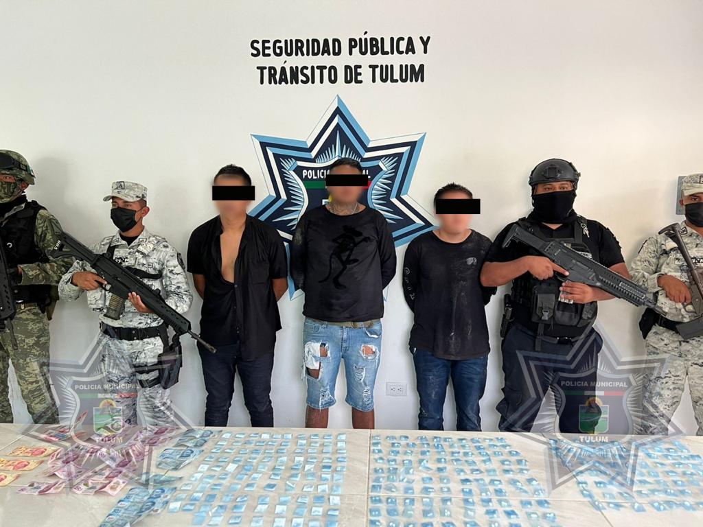 Tres presuntos narcomenudistas fueron detenidos en la zona costera de Tulum, en posesión de casi 300 dosis de cocaína y crack.