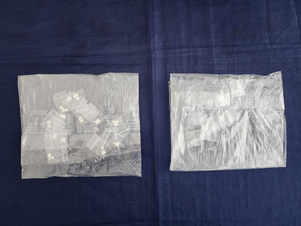 En ese lugar, observaron a un hombre con una motocicleta que guardaba en el interior del asiento varias bolsitas de plástico transparente con fragmentos sólidos cristalinos.