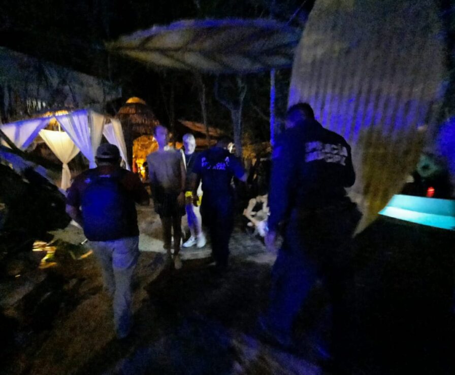 Clausuran autoridades fiesta clandestina en Tulum; se llevaba a cabo en un predio de la carretera Tulum-Cobá.