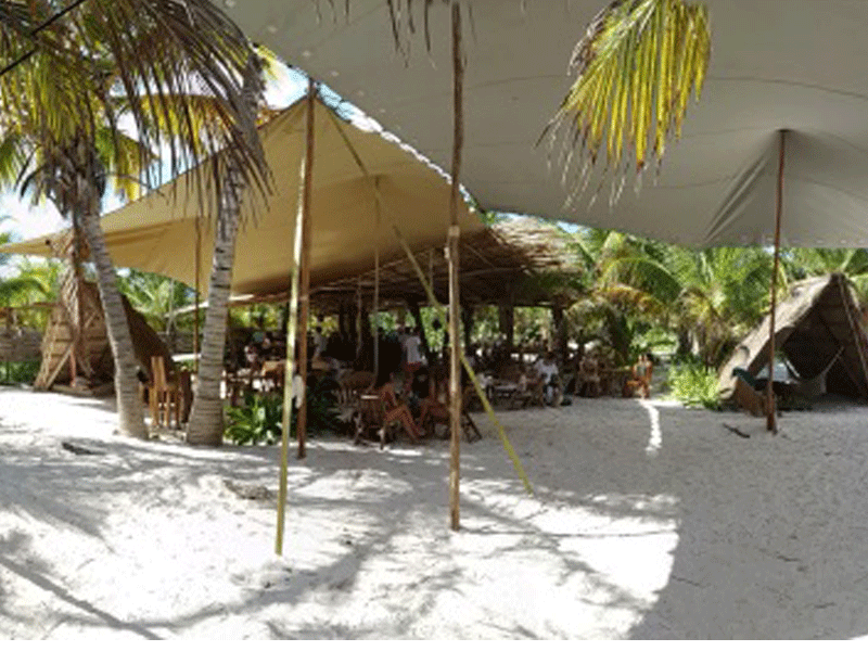 En un comunicado, se informó que personal del organismo federal inspeccionó una superficie de 1,909.00 metros cuadrados en la que se encontraron dos asoleaderos triangulares de madera dura de la región, con paredes y techo de zacate; nueve asoleaderos cuadrados con camas de postes de madera, así como un bar, área para comensales y toldos de descanso de estructura de madera, todo ello sobre suelo arenoso.