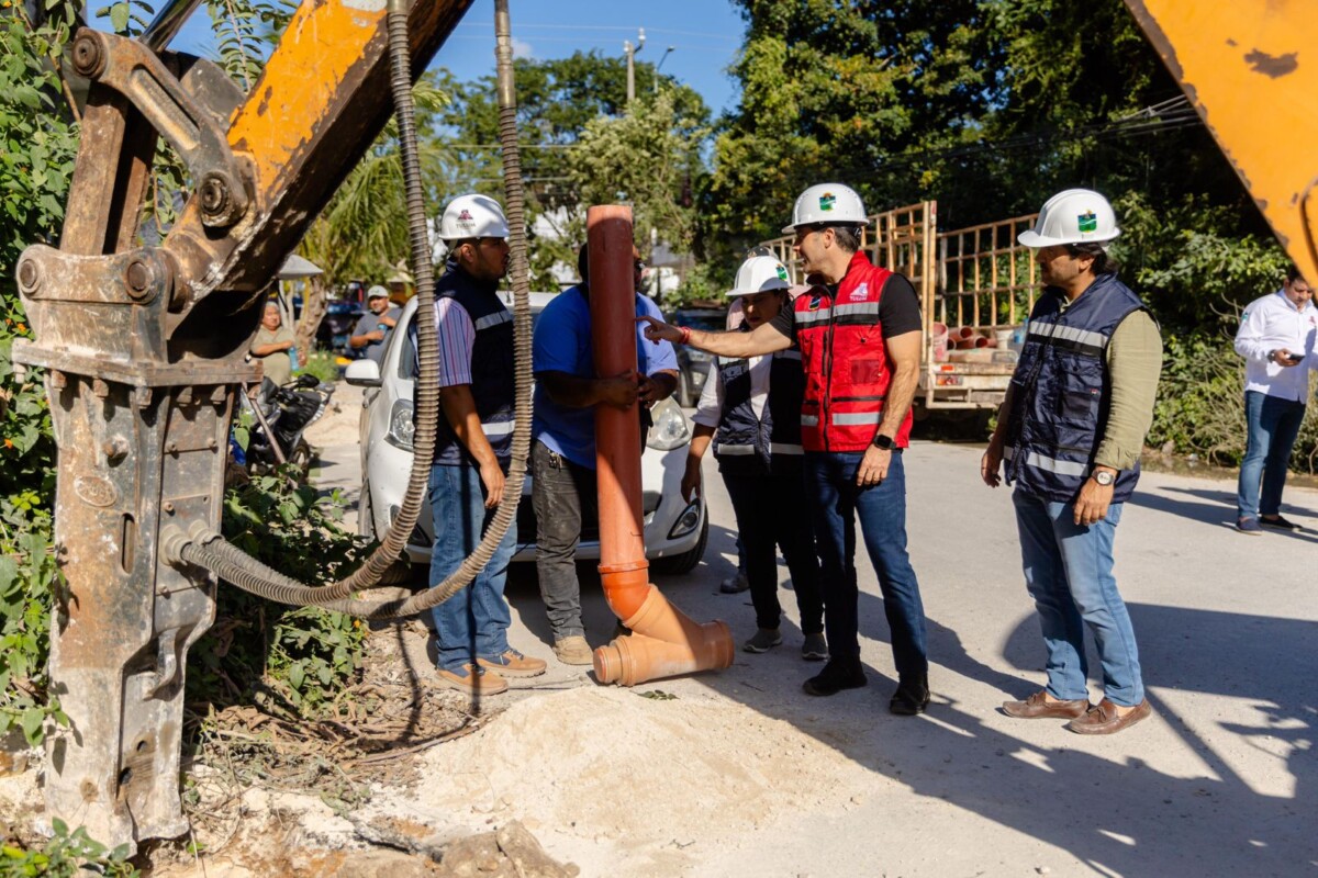 Tulum.- Con un avance significativo, el presidente municipal, Diego Castañón Trejo, presentó la obra de drenaje sanitario en la colonia Ejido de Tulum, el cual tendrá una inversión histórica que resolverá problemas residuales, esenciales para mantener la salubridad y el equilibrio hidrológico.