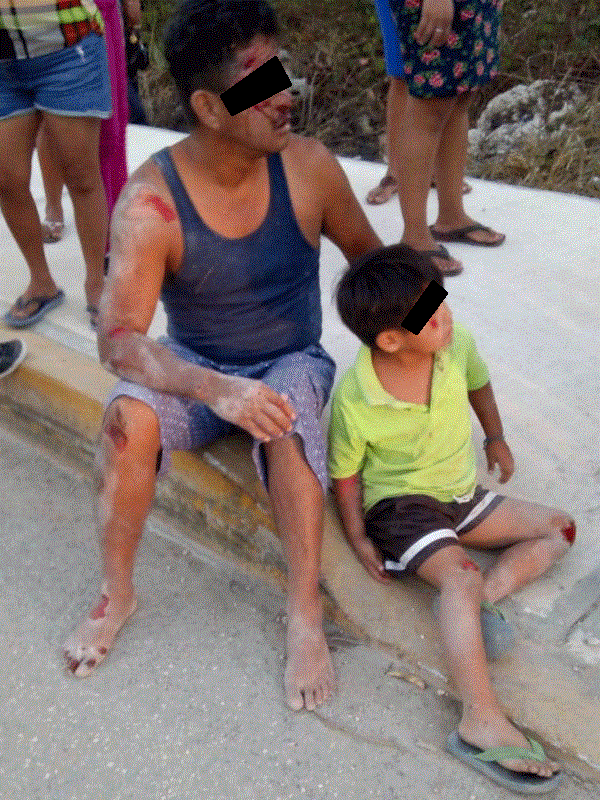 Tulum, Quintana Roo.- Un papá y sus dos hijos que viajaban en una moto, terminaron con lesiones graves, luego que derrapan por la imprudencia de ir a exceso de velocidad, en la carretera estatal Tulum-Cobá, entre los poblados de Macario Gómez y Francisco Uh May.
