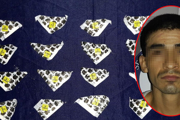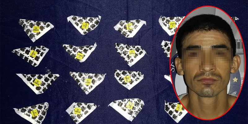 Al entrevistarse con el sujeto de nombre Juan «N», este adoptó una actitud sospechosa y agresiva, por lo que los oficiales procedieron a realizarle una revisión de seguridad, encontrando entre sus pertenencias 19 bolsitas con posible cocaína para su venta.