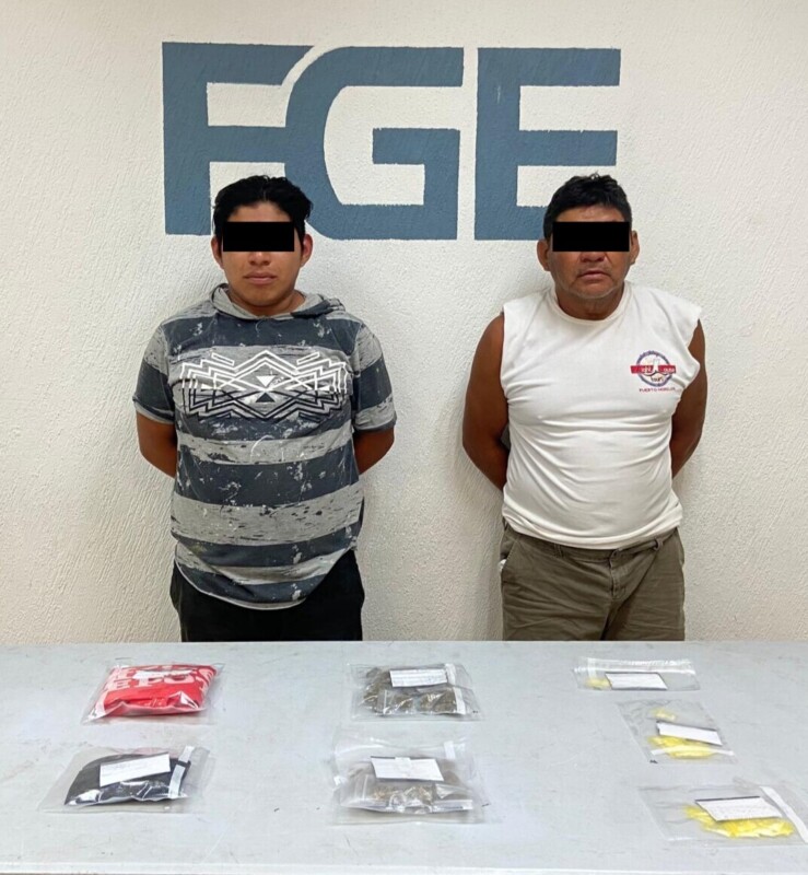 En otra intervención, agentes de la Policía de Investigación junto con la Sedena, arrestaron a José Alejandro “N” y Feliciando “N” en la avenida J. Zetina Gasca en Puerto Morelos, por su presunta participación en delitos contra la salud relacionados con narcomenudeo. Durante la inspección, se incautaron dosis de sustancias cristalinas y de hierba seca, similares a drogas ilícitas.