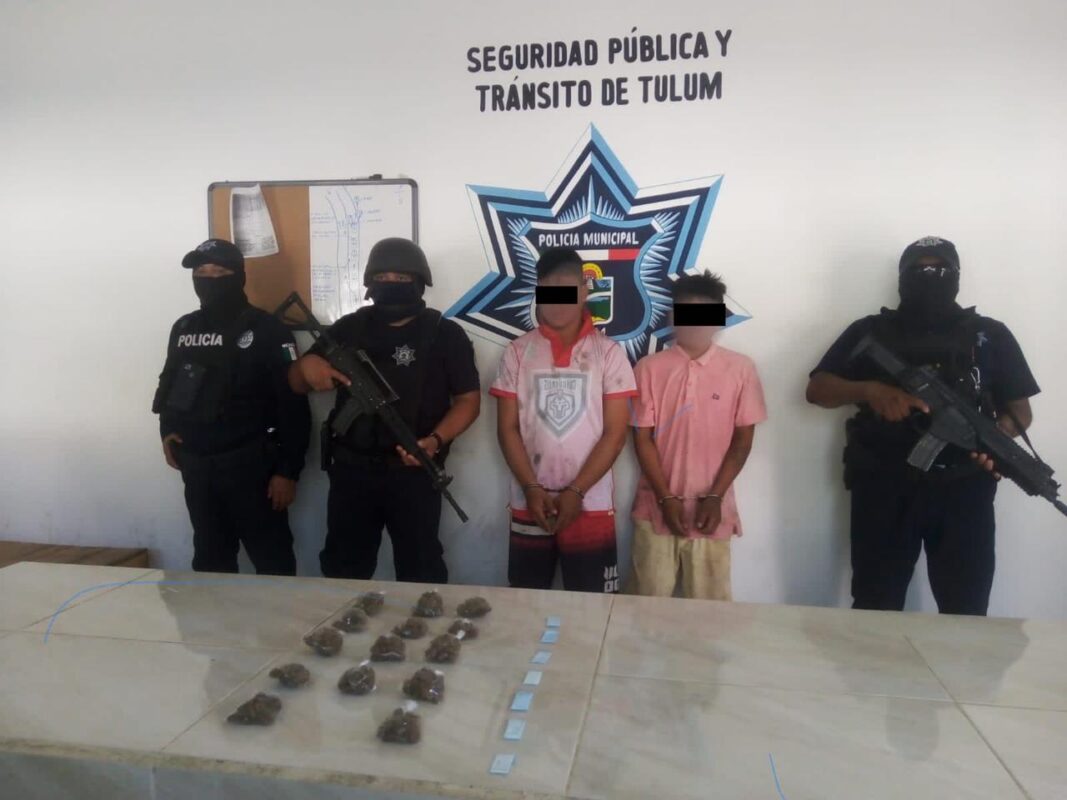 Dos presuntos narcomenudistas fueron detenidos en el poblado Macario Gómez, en el municipio de Tulum, a quienes se les decomisó varias dosis de cocaína y marihuana.
