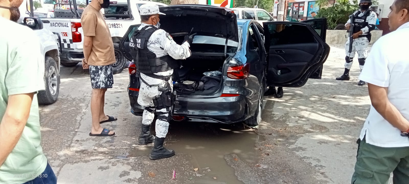 Elementos de la Guardia Nacional (GN) destacamentados en el municipio de Tulum, aseguraron a tres sujetos armados con pistolas, y en posesión de drogas, quienes se desplazaban en un vehículo Cavalier, los empistolados intentaron evadirse, pero fueron sometidos por los guardias.