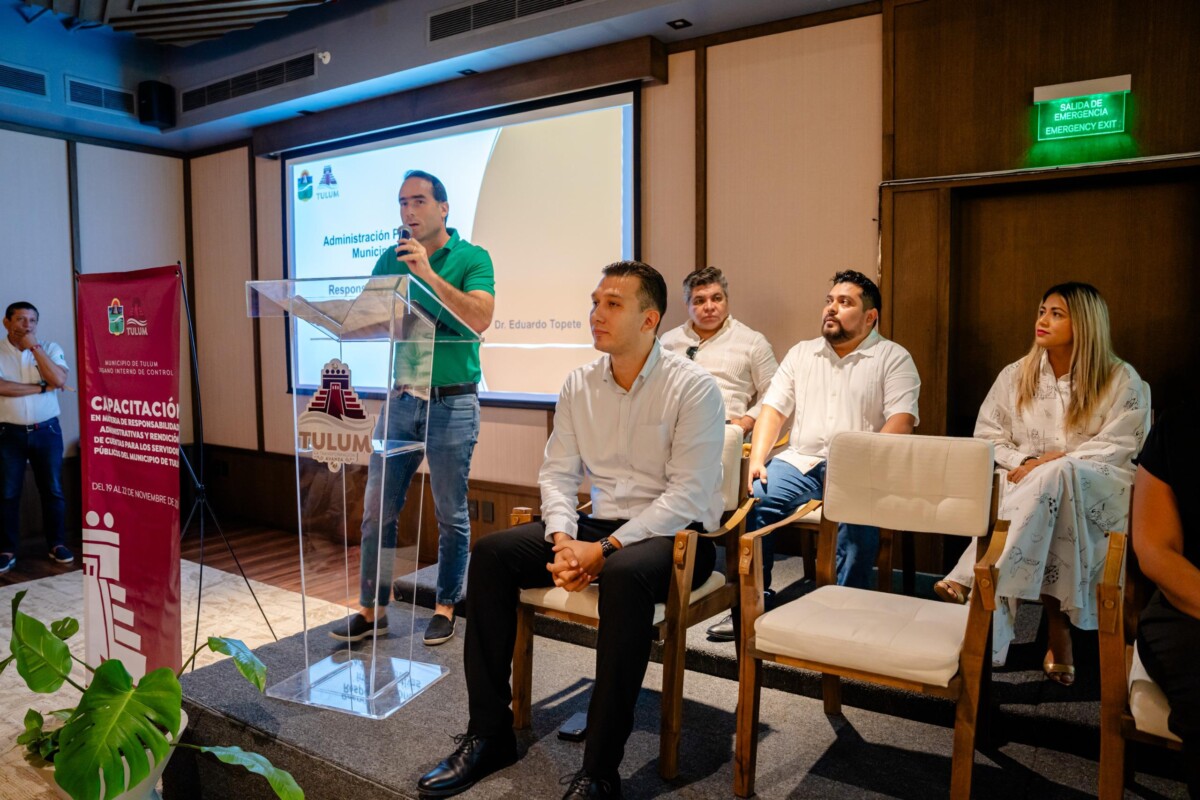 El Presidente Municipal de Tulum, Diego Castañón Trejo encabezó el arranque de una capacitación en materia de responsabilidades administrativas y rendición de cuentas para los servidores públicos del gobierno municipal 2024-2027, promovido por el Órgano Interno de Control.