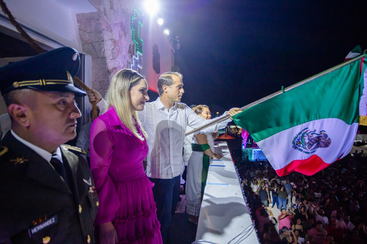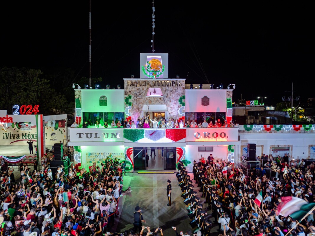 Tulum.- Más de 5 mil personas acompañaron al Presidente Municipal de Tulum, Diego Castañón Trejo, en el tradicional grito de la independencia de México, celebrado desde el balcón del Palacio Municipal.