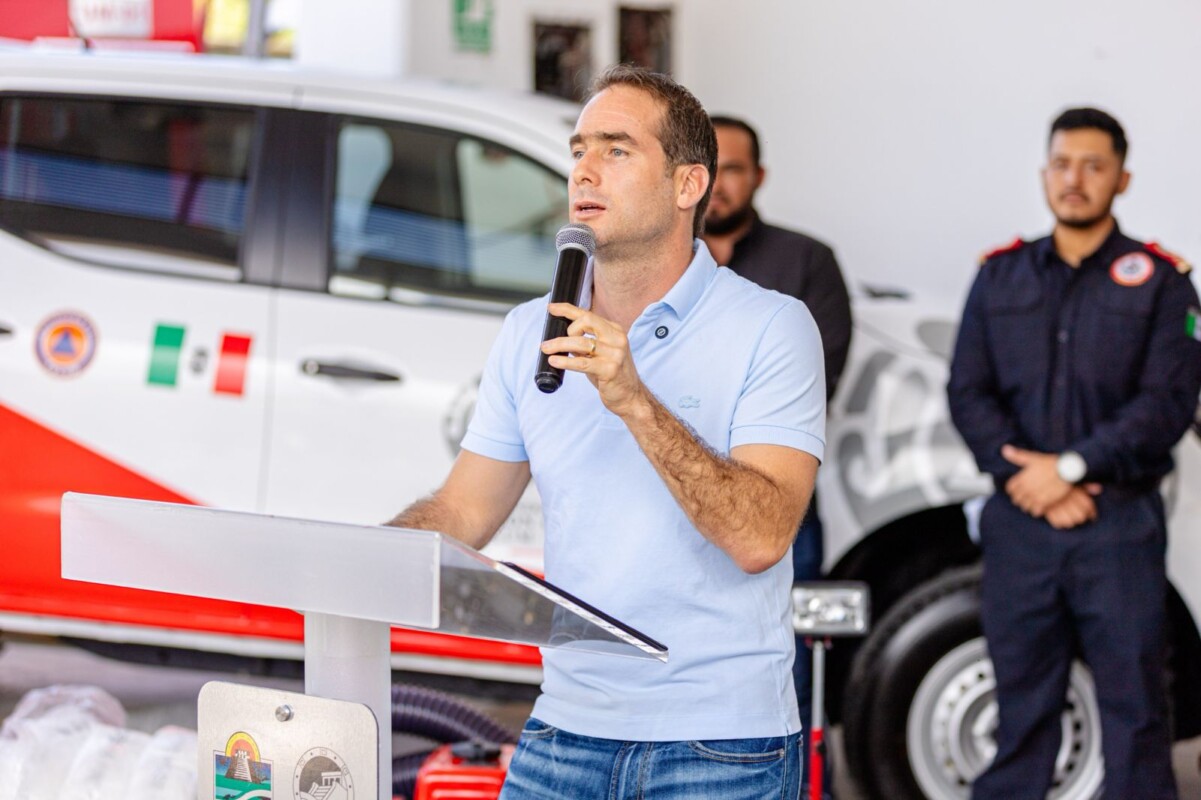 “Hoy reconocemos a nuestros héroes bomberos”, compartió al tiempo de enumerar el equipo entregado por el edil, entre ellas, 20 mangueras contra incendios profesionales, 4 boquillas blue devil contra incendios, 2 boquillas viper, 4 bifulcaciones, 1 motobomba tohatsu para el combate, además de una camioneta de la marca Nissan, tipo Frontier 2024, asignada para Protección Civil.