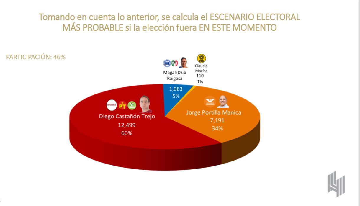El 60 por ciento manifestó su intención de votar por él, si las elecciones fueran hoy. Esta cifra coloca a Castañón Trejo con una ventaja de casi 2 a 1 sobre el competidor más cercano.