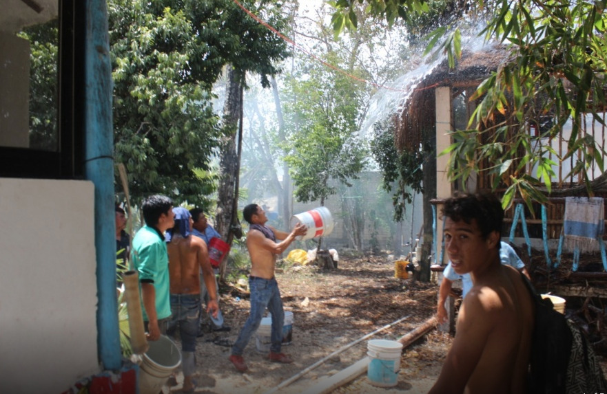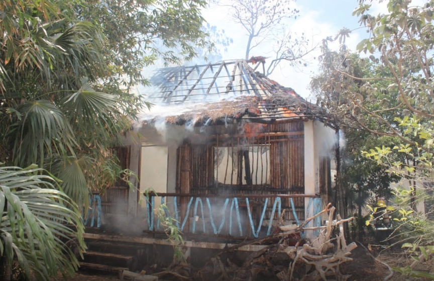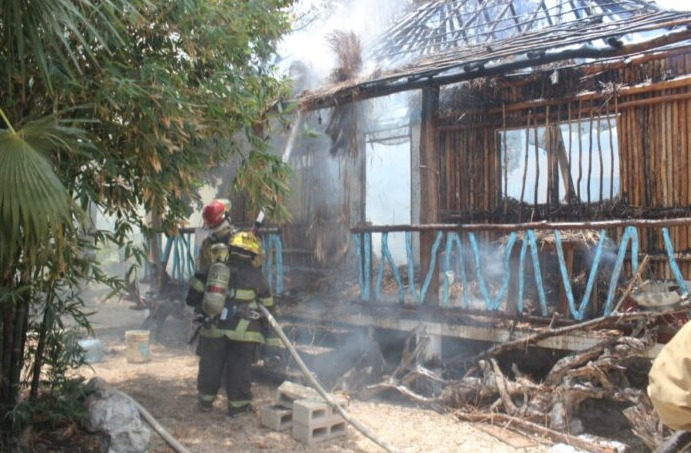 Pero fueron luego auxiliados por elementos del H. Cuerpo de Bomberos de Tulum, quienes terminaron apagando el incendio.