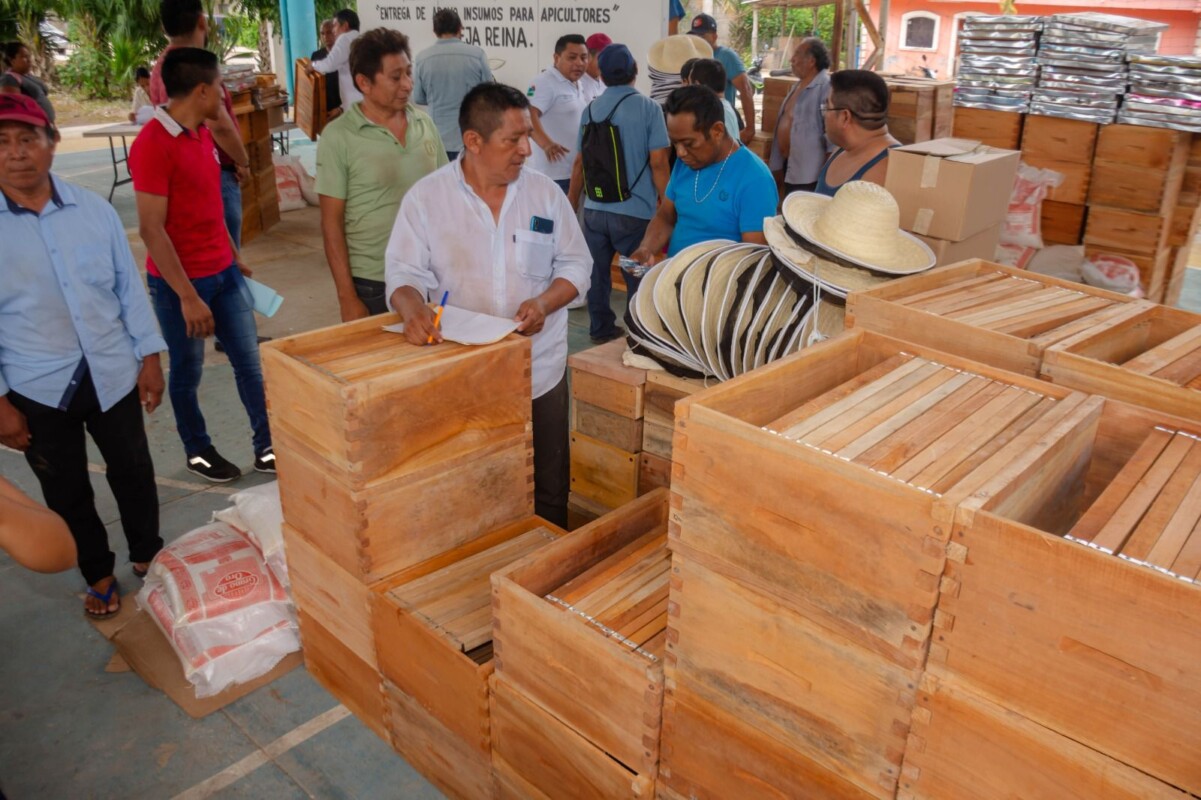 Con el fin de profundizar los beneficios de la Cuarta Transformación en Tulum, 48 familias apicultoras recibieron de manos de sus autoridades municipales, insumos y equipos que servirán para el fortalecimiento y desarrollo económico de la apicultura.
