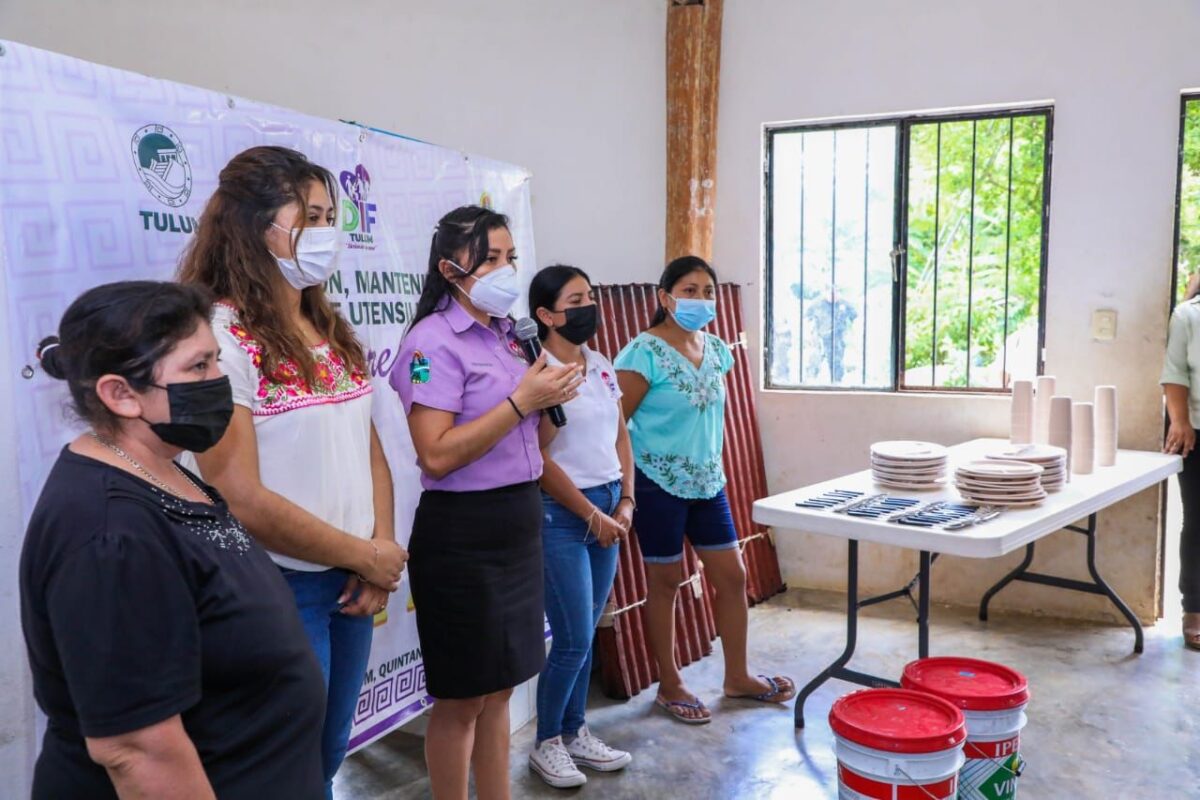 Este viernes la presidenta del DIF-Tulum, Lic. Ileana Canul de Dzul, encabezó el inicio a los trabajos de reparación del inmueble escolar y entregó nuevos utensilios al director de la escuela y a la presidenta del Comité del Desayunador, Agustín Osorio Sánchez y Severiana Uitzil, respectivamente.