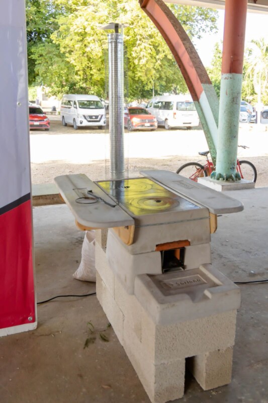 Las estufas ecológicas son proveídas por la empresa especializada Fuego Limpio y están manufacturadas de concreto reforzado. Tiene una placa de metal de 3 milímetros de espesor y anillos desmontables para usarlo como comal. Sólo necesita 40% de leña en comparación con el método tradicional y elimina todo el humano de la vivienda a través de tres tubos extractores.